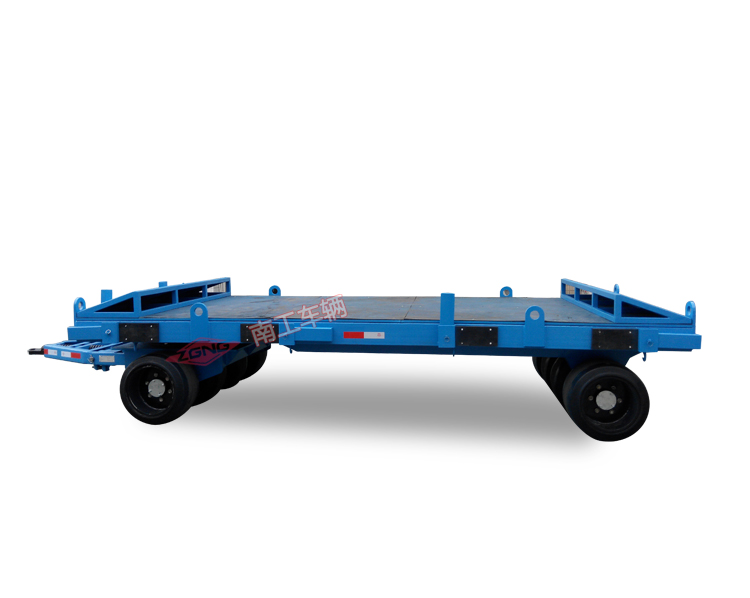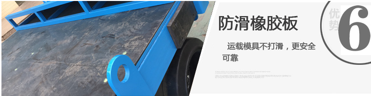 本开元网页版_开元(中国)适用于工厂、码头、仓库、物流中心等物流周转运输,特别适用于模具周转,开元网页版_开元(中国)承重35吨,平台铺20MM厚橡胶板。拖车本身无动力,可用5吨叉车、50KN牵引车牵引。